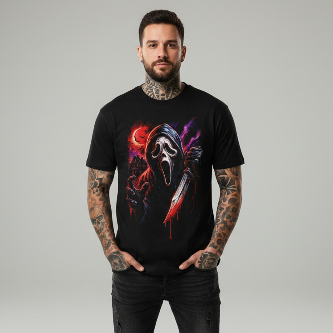 Mysterious. Bold. Unapologetic. The No Caller ID tee channels the eerie vibe of late-night calls and masked figures into a streetwear essential. Inspired by the Scream ghostface, this design blends horror aesthetics with high-end drip, creating a look that turns heads and chills spines. Crafted from 100% heavyweight USA cotton, it offers a structured fit, soft feel, and long-lasting durability. The double-stitched hems and tear-away label deliver clean comfort, while the graphic speaks for itself — dark, dangerous, and iconic.